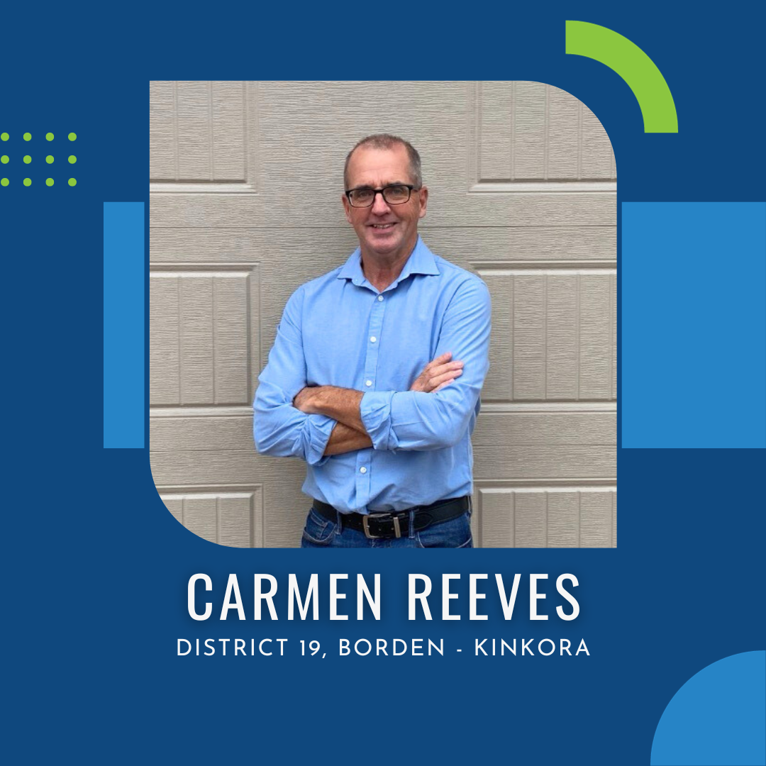 “I have a deep connection to people in every corner of the riding. As a lifelong resident of District 19, I understand the people, the challenges we’ve faced, and the fortitude we’ve shown. Simply put, I love my community. I want what is best for it. I know that the best way for me to personally contribute to that end is as the MLA representing the people in the district in the government of Premier King.” says Reeves.