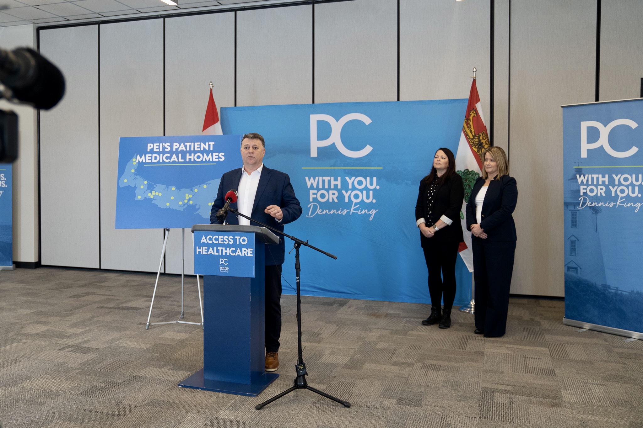 Premier Dennis King, along with PC Candidates Jill Burridge and Jenn Redmond, announced